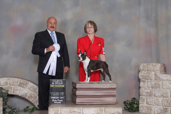 Our good fortune continued on day 2 (Feb 5, 2011) when our Katie - MacKendrick Kiss Me Kate recieved a Group 4 placement from Judge Ramon Podesta to complete her Canadian Championship.