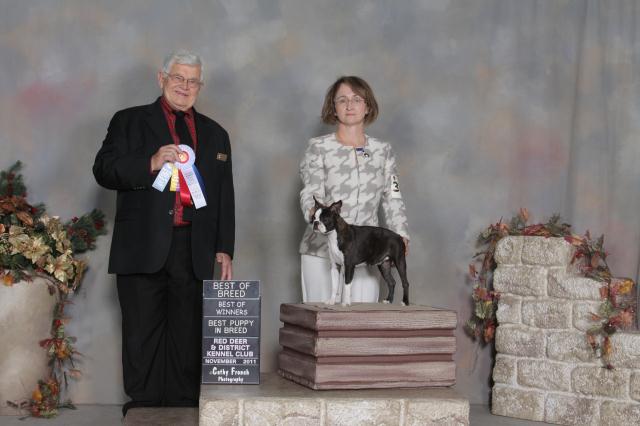 After taking Best of Winners on October 22 in Camrose her first weekend out, our Traylee (MacKendrick Red Red Wine of Sunglo) swept the breed judging on Sunday Nov 6 in Red Deer winning Best of Breed, Best of Winners and Best Puppy in Breed under Judge Richard Beauchamp.