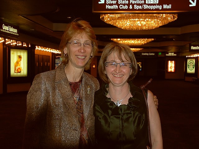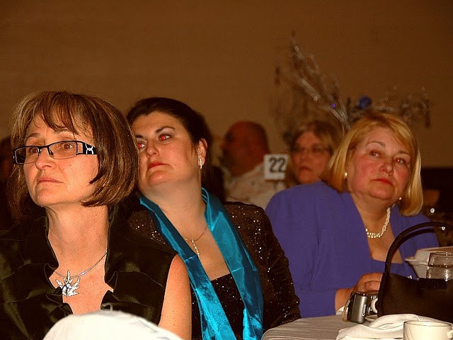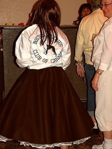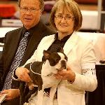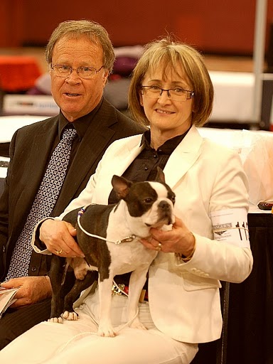 The week of April 11, 2011 was definitely an adventure for the MacKendrick Bostons. Chris & Susan, along with 10 dogs, left Calgary on April 9 with a "Reno or Bust" attitude and made it to Boise, Idaho the first day. After spending a very short night with Judy & Bill Warren we started the last leg of our journey to Reno. Some 50 miles south of Boise we encountered the dreaded Murphy (of Murphy's Law fame) and blew a fan belt. We pulled into a weigh scale and were deciding what to do (with the help of OnStar) when a couple of local fellows stopped to lend a hand. Between OnStar and the locals we found that we could get a fan belt at a Napa Auto Parts some 20 miles back the way we'd come. Off Chris went with the two helpful gentlemen to get a fan belt leaving, Susan wondering if she'd ever see him again. Chris returned in about an hour and we installed the new belt only to find that one of the pulleys the belt runs on had broken bearings which was the reason we lost the belt in the first place. From then on the day went from bad to worse. The two locals called every auto parts store within 50 miles only to find that we could only get the part at a GM dealership, which were of course all closed, it being Sunday. Going beyond the call of duty the two local fellows drove Chris to every backyard mechanic they knew to see if anybody had a used part that might fit. Susan stayed with the dogs at the trailer and had a minor "meltdown" making sure everyone we knew understood what a "pain in the ass" it was to have "used" equipment and to be stuck on the side of the road. By 4:00 PM it was obvious that we weren't going to get the parts we needed until Monday. Susan had contacted Bill & Judy Warren who were waiting when Chris arrived back at the trailer safe and sound. We were there for the night. Chris went with Bill and Judy to get Pizza for supper and we settled in, started the generator and did toe nails. Bill & Judy were back at 7:30 AM with breakfast and the new parts. After installing the parts we were on our way, a day late and a dollar short. The rest of the week went well. Not a lot of ribbons but we met a lot of Boston people and had a good time at the various social events. Susan also managed to get in some shopping for clothes and "bling". The pictures are courtesy of Maxine Uzoff as she seemed to be the only one with the presence of mind to bring her camera into the ballroom.