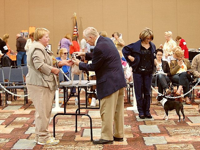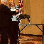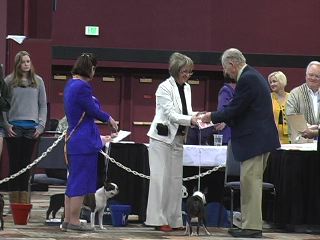 On the final day, Friday, April 15, Rocky (Ch.Oui Will We Will Rock You at Lonestar) competed in the Stud Dog Class and placed 4th, Hanna (MacKendrick Not Droppin' the Ball) competed and won the Brood Bitch class.