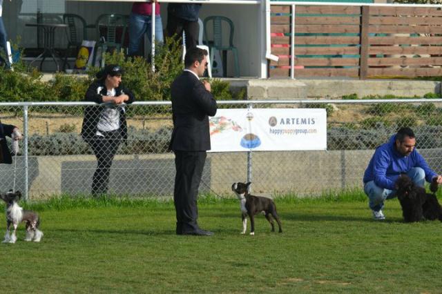 In the company of Constantinos Andreou, our Smudge (Ch Magicmists Dark Embrace) attended his first European show, a three nation International show. Under the expert handling on Constantinos and his friend Stavros Constantinou Smudge recieved his Championships for Bulgaria, Moldavia and Cyprus with CAC, CACIB, Best Male and BOB on the first two days and a CAC, CACIB and Best Male on the Third day. He missed out on the BOB to his girlfriend Hera (Algernon Beauty Gremlins). He shared a win in the couples competition with Hera and they went on to win 4th best couple in the show.
